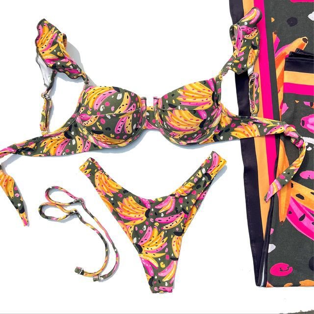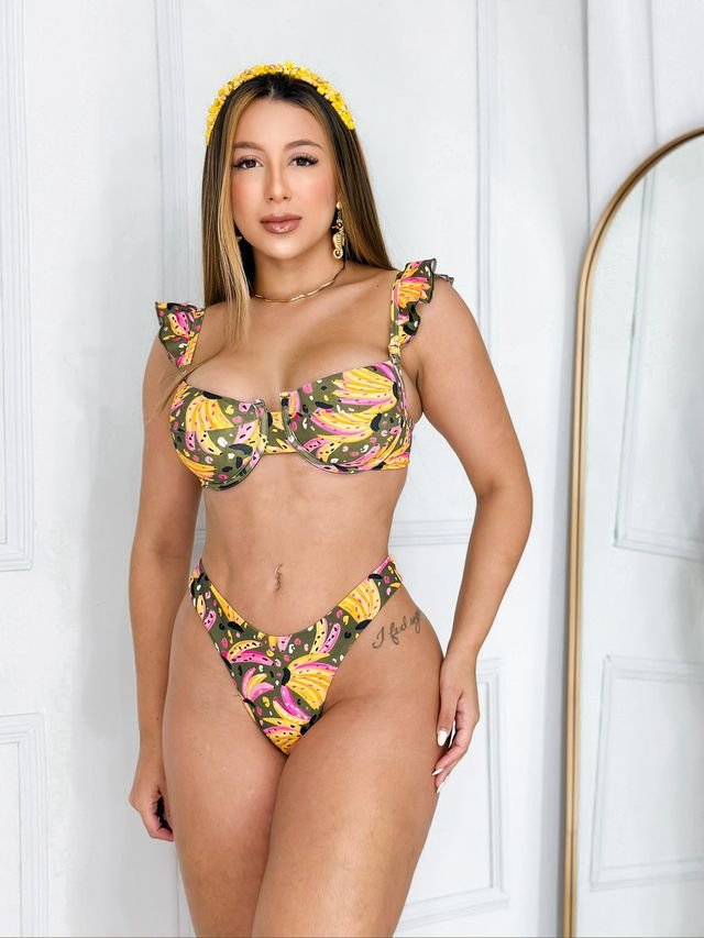 Biquíni Maite com aro e ja vem com bojo removível, alças 2 em 1 e amarração nas costas;