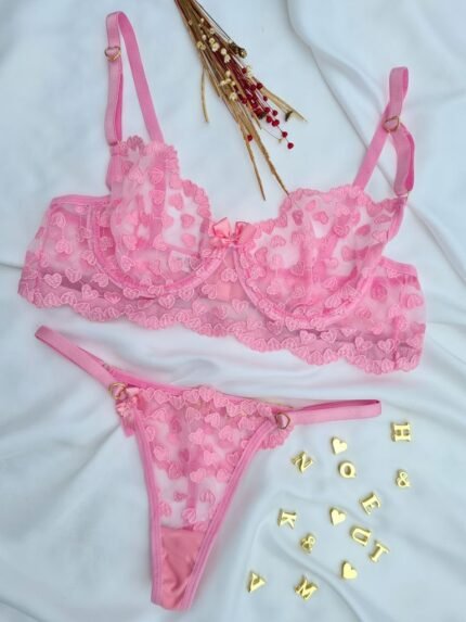 Conjunto Rosa Claro s/bojo Corações Personalizável