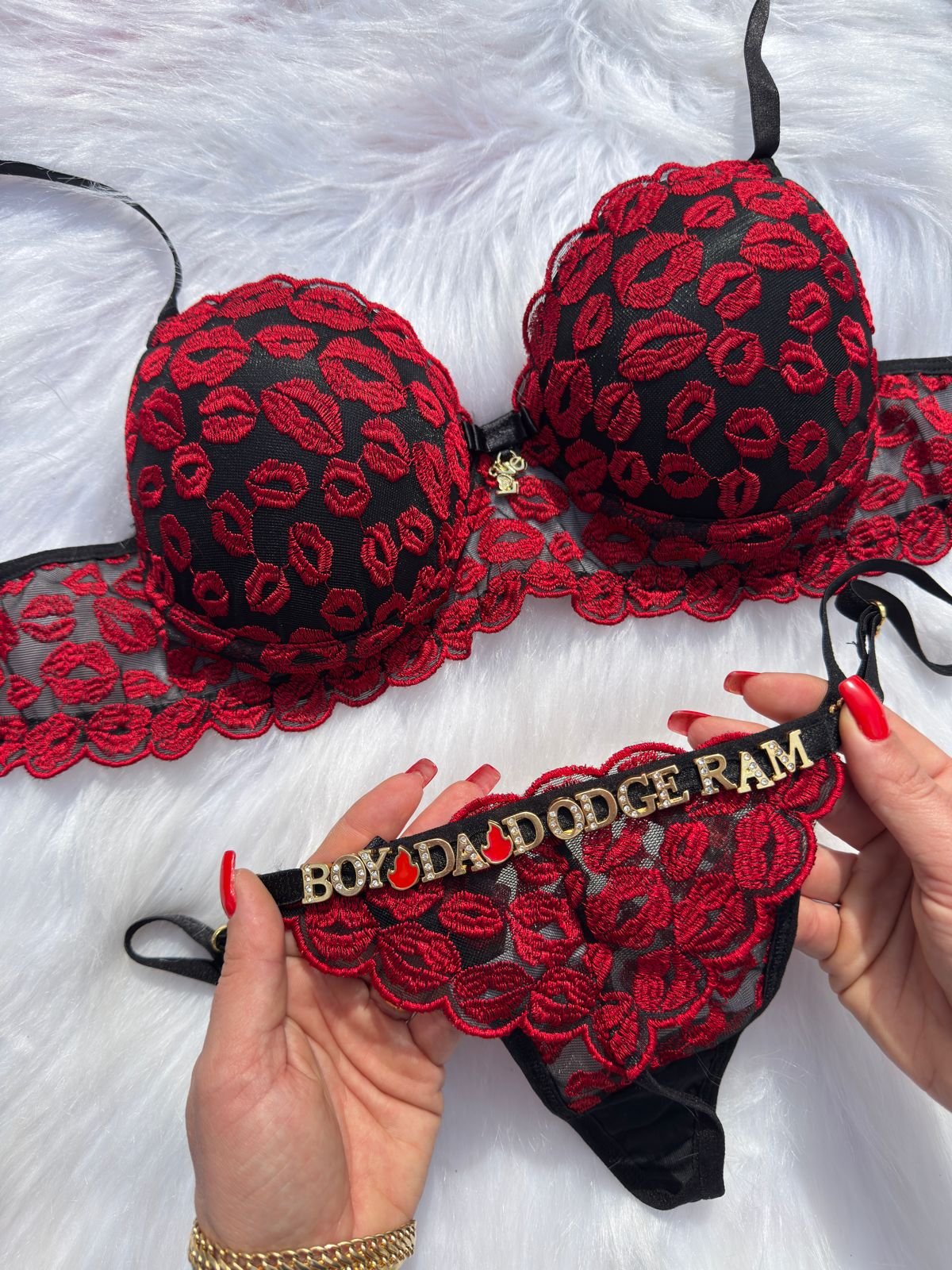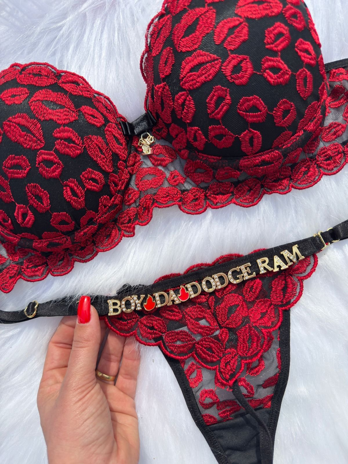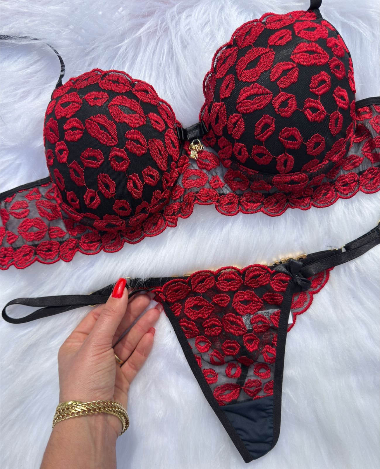 O Conjunto está disponível nos tamanhos P/M/G e GG, O Sutiã com bojo rico em detalhes com tule bordado, laço e pingente; O bojo desta peça possui bolha nos tamanhos P e M, alças com regulagem em metal. . A calcinha modelo fio personalizável possui forro 100% Algodão na parte baixa e detalhe em tule na parte da frente sem forro. Fio Tamanho Único.