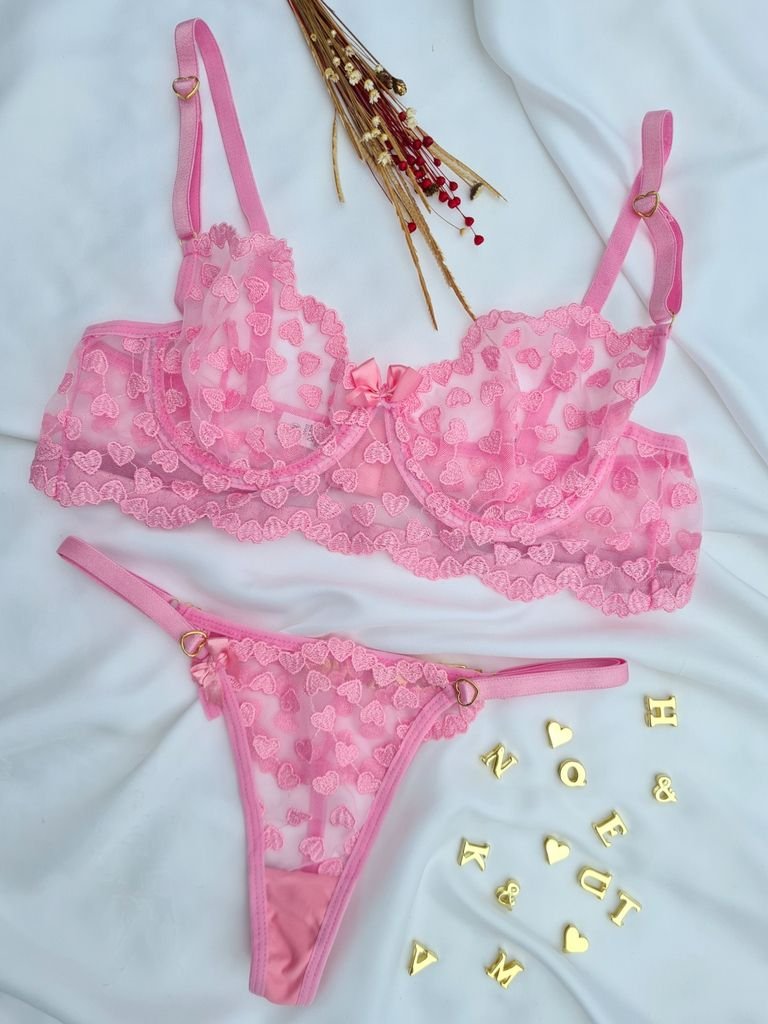 Início PEÇAS PERSONALIZADAS Conjunto Rosa Claro s/bojo Corações Personalizável